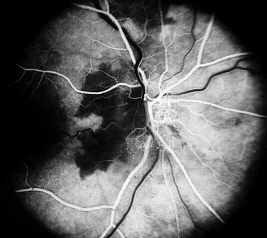- Posterior ciliary artery occlusion on fluorescein fundus angiography: If fluorescein angiography is performed during the very early stages, in arteritic AION there is always evidence of posterior ciliary artery occlusion with massive filling defect of the choroid[2,11-14] (see figure 1-b). This is extremely rare in non-arteritic AION. Therefore, angiography provides extremely useful information in diagnosis of GCA and arteritic AION and must always be performed in all AION cases to rule out arteritic AION.